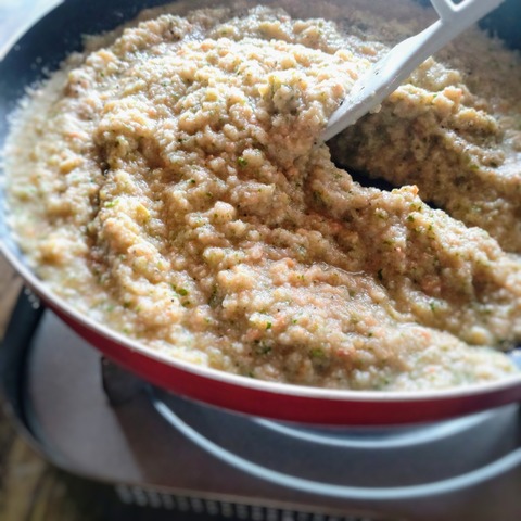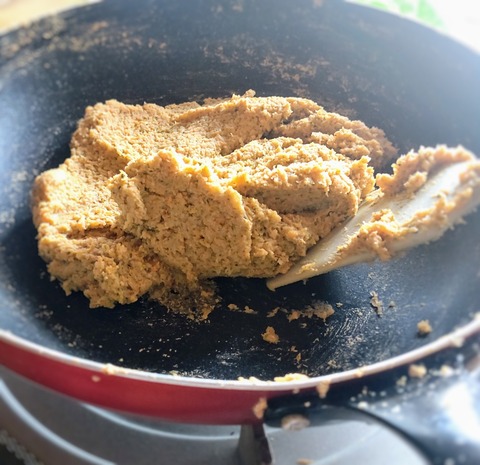 (欲張って野菜を倍量にしたのでなかなか焼けず、ひっくり返してさらにほぐす作戦に)