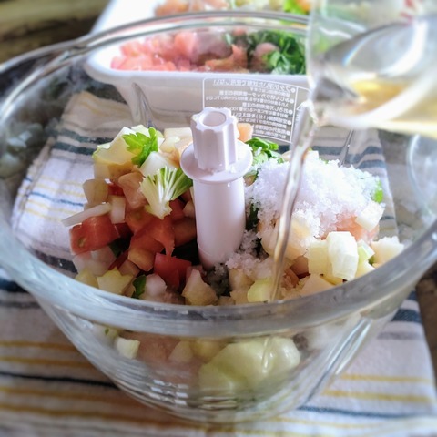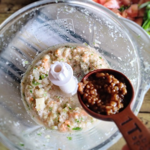 ガーっと回した所で、醤油麹を入れ忘れた事に気づく 💦