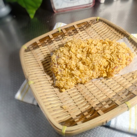 コーンフレークを衣に使ってます。(写真見たら分かりますね。笑)